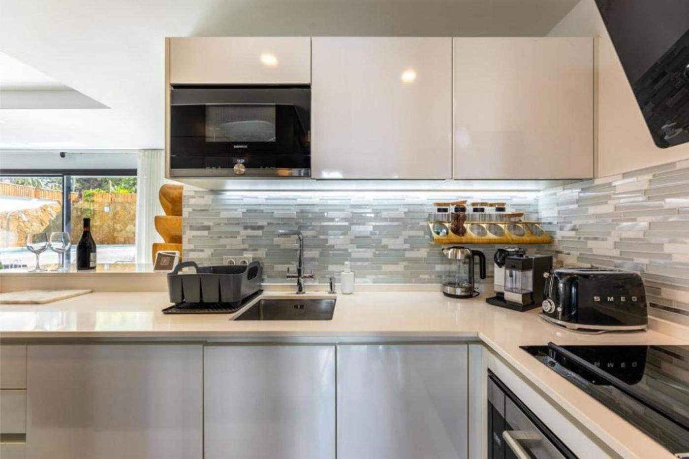Esta villa con aire acondicionado consta de 3 dormitorios, una sala de estar, una cocina totalmente equipada con nevera y cafetera, y 3 baños con bidet y ducha. Hay toallas y ropa de cama en la villa.