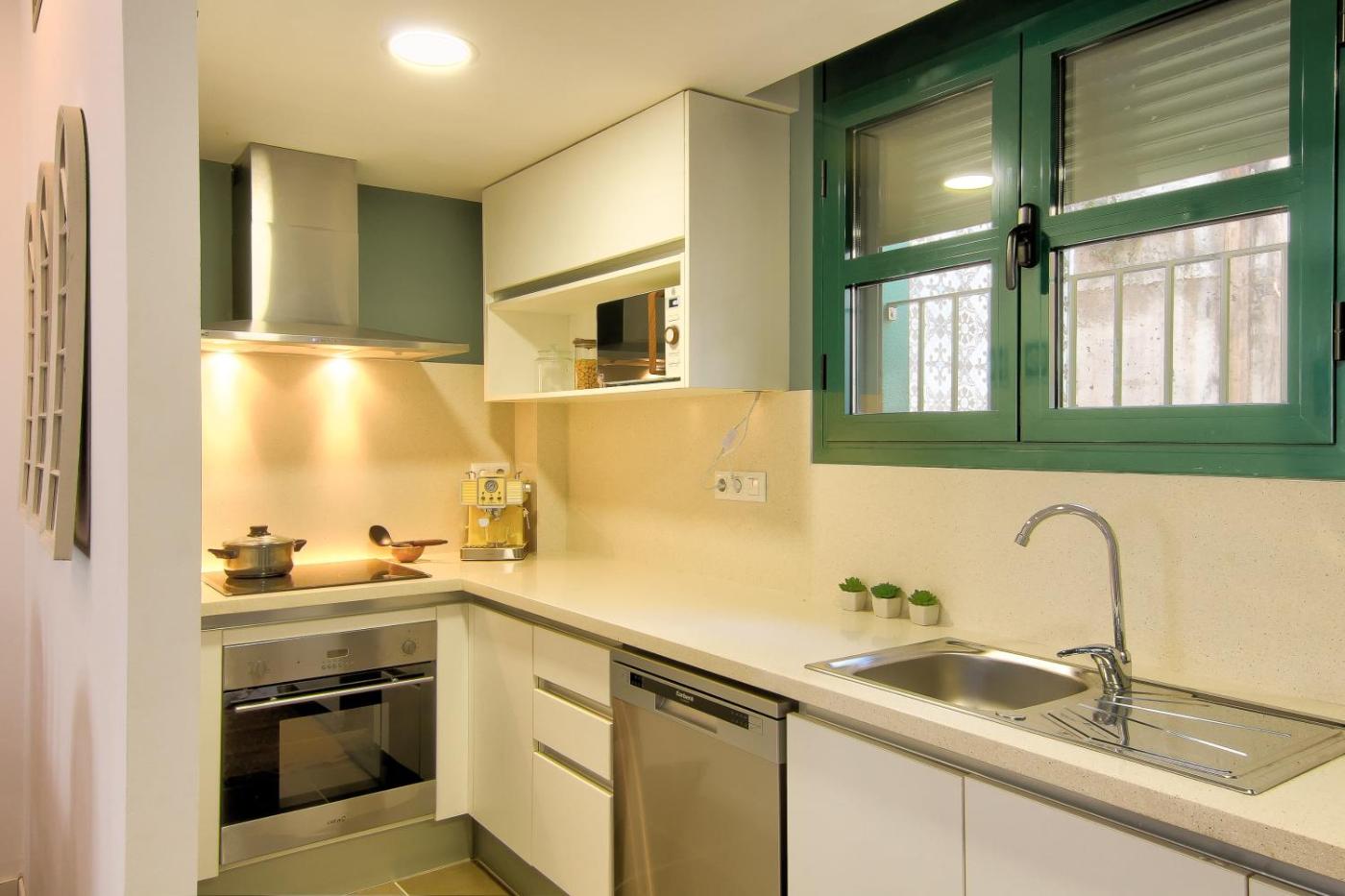 Este apartamento con aire acondicionado se compone de 2 dormitorios independientes, una cocina totalmente equipada con nevera y lavavajillas, y 1 baño. Hay TV.